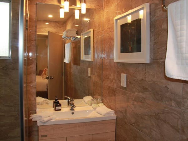 - King bed (in upstairs room) or Queen bed (in downstairs room) together with Single bed